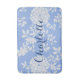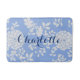 Customized Bath Mat: Graceful White Flowers/Classic Delft Style Motif/Pastel Blue Background/Modern Script Typography For Personalization