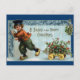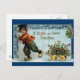 A Dutch boy pulls a wagonload of holly past a background of blue Delft ceramic tiles with a holly pattern in this vintage Christmas postcard from 1914.