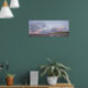 Panorama format poster print of colourful clouds over dunes, beach and North Sea during a sunset at Scheveningen beach in the Hague at the coast of the Netherlands.