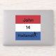 Dutch soccer player using dot as a ball Dutch flag in the background, customizable, change the jerseynumber and name into your favourite player's