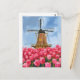 Dutch Windmill Tulip Flower Field Watercolor Postcard