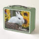 Personalized Dwarf Hotot Bunny Rabbit with Sunflowers Metal Lunch Box
