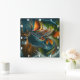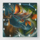 This square wall clock presents a vivid, action-packed scene of a majestic deer standing in water while a massive bass leaps dramatically towards it. The detailed artwork captures the raw energy of nature, making it an engaging and unique decorative piece for any outdoor enthusiast's home, cabin, or office.