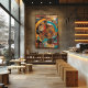 This abstract collage design presents an intriguing combination of geometric circles and patterns in a dull, vibrant palette of colors. The shades of brown, blue and yellow create a composition that adds depth and dynamism to any space. Perfect for lovers of modern abstract art, this design is ideal for giving a touch of sophistication and energy to your home