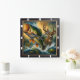 This artistic wall clock vividly illustrates a dynamic outdoor scene, combining the excitement of fishing and hunting. Featuring a majestic bass leaping from a lake alongside a powerful deer in a forest, it captures the essence of wild animals in their natural habitat. Perfect for any angler, hunter, or nature enthusiast's decor.