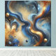 Fluid streams of blue and gold create a mesmerizing pattern, reminiscent of flowing water or swirling smoke. Light reflections add a touch of elegance and depth.