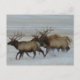 Bull Elk Postcard. Elk bulls run through the snow on the Alberta prairies, elk can move very quickly and can cover many miles in a short time.