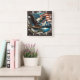 Eagle by American Flag Square Wall Clock