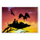 Two eagle chicks wait as a parent comes in from hunting. Their silhouettes are a stark contrast against the fiery sky of the setting sun. Computer art by Kathie Miller