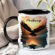 Elevate your morning routine with the Eagle in Flight Sunset Reflection Mug. This breathtaking mug features a soaring eagle captured mid-flight against a stunning sunset, with the vibrant sky and serene lake beautifully reflected below. Customized with your name, it adds a personal touch that makes it uniquely yours. Perfect for coffee, tea, or any hot beverage, this mug is an ideal gift for nature lovers, bird enthusiasts, and anyone who admires the majestic beauty of wildlife. Enjoy the splendour of the great outdoors with every sip.