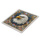 A striking tile mural featuring a majestic eagle's head, adorned with intricate patterns and a patriotic theme. Rich colours of blue, red, and white surround the bird, creating a bold and vibrant representation of national pride and artistry.