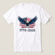 This striking design features a majestic bald eagle with outstretched wings soaring over a distressed American flag backdrop. The powerful eagle symbolizes American freedom and strength, while the weathered flag design adds a vintage, commemorative feel. The bold "1776-2026" dates prominently display the 250-year span of American independence.