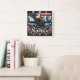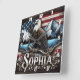 Eagle on Branch With Mountains & Flag Square Wall Clock
