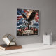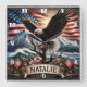 Eagle on Tree With Flag Background Square Wall Clock