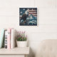 Eagle Perched on a Branch Near Mountains and Waves Square Wall Clock