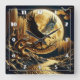 Eagle Perched on Branch Under Full Moon Square Wall Clock