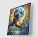 Eagle Perched on Branch Under Full Moonlight Square Wall Clock