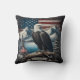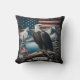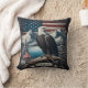 Eagle Perched on Branch With Mountains and Flag Throw Pillow