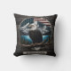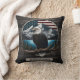Eagle Perched on Branch With Mountains and Flag Throw Pillow