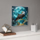 A majestic eagle sits proudly on a golden tree branch under a large moon, surrounded by serene waters and a tranquil landscape.