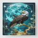 Eagle Perched on Golden Tree Branch at Night Square Wall Clock