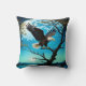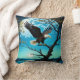 Eagle Perched on Tree Branch Under Full Moon Throw Pillow
