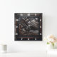 Eagle Sculpture With Mountain and Flag Design Square Wall Clock