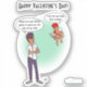 A valentine sticker with a funny cartoon about being single.  Original artwork by DB Cartoons.