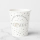 These nursing school graduation celebration paper cups features a typographic design reading "eaRNed it" highlighting the RN in gold with a sophisticated and trendy script and serif font pairing, and the graduate's name. A gold and black polka dot pattern sets the mood for a party. These customizable paper cups are perfect for a party for a new nurse that is graduating from medical school with an RN, registered nurse, degree.