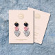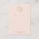 If you design your own earrings for sale or are a wholesaler with your own brand, this display card is perfect for your needs. Add your square or circular logo to the top. There are markers for the placement for the earrings. Add your custom text at the bottom. The reverse has your logo at the top, and a thank you to your customer in the centre. There is also your business address and contact details. It's a great way to ensure repeat business. Whether you have a traditional store or an online business, this will make your earrings look professional and beautiful. The placement of the holes is perfect for drop earrings or studs. They also won't impede the information on the reverse. This is on a blush background although other colours are available. If you prefer a specific colour, you can do this through the edit menu, or contact the designer who will happily do it for you.