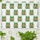 This charming watercolor-style artwork celebrates St. Patrick's Day with a whimsical touch. At the heart of the image is a quaint green house with a thatched roof, complete with tiny windows, a green door, and surrounded by lively clovers and lush greenery. Above the house, a large green gingham bow adorned with delicate lace detailing adds a festive flair, tying together the holiday spirit in a soft, artistic presentation.