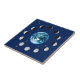 Ceramic tile in the phases of the moon, surrounding a blue-swirled Earth, on a starry background
