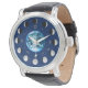Watch in the phases of the moon, surrounding a blue-swirled Earth, on a starry background