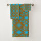🛀 Bath towels are available as a three piece set including wash cloth, hand towel and large bath towel together or purchase separately. Materials including back is 100% cotton, front is a polyester blend for sublimation printing all of our great original artwork designs onto. Bathroom decor and guest towels. Aesthetic customizable designer style towels.