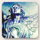 A silver and blue angel amid the sky and clouds.