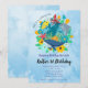 A charming customized invitation featuring a watercolor background and a playful Earth illustration surrounded by sea animals like a whale, octopus, and fish, along with seaweed. Perfect for a fun and unique celebration with an ocean-inspired theme.