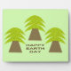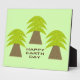 This awesome plaque features a graphic image of three trees that resemble palm trees with large green leafy fronds and a sturdy brown tree trunk. There is a message in brown text to look like soil under the trees. The message says Happy Earth Day.