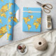 Earth Gold Continents Design Blue Sea Wrapping Paper