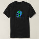 Skull with the earth mapped onto it and the words "act now, the future is coming" to get people thinking about ways to help the earth.
