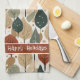If you are wondering what colour combinations to pick for your Christmas decor and gift wrap supplies this year, I've created collections of coordinating patterns to make life just a bit easier. This Christmas kitchen towel features a flat art pattern of leaves and Christmas trees dotted with snowflakes all in a warm, earth tones colour palette, Add your favourite Holiday greeting or other text using the provided template to add your text. Search ID1009 to see other products and patterns in this colour scheme.