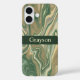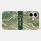 A marbled or agate design in earth tones of green, beige, and tan make an interesting pattern on this iPhone case. Personalize with your name in a dark green band across the centre.