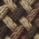 This richly textured crochet-inspired pattern features an intricate braided design woven from thick, rope-like yarn strands in warm earth tones. The interlocking chevron-style weave alternates between shades of camel, espresso, chestnut, and deep coffee brown, creating a cozy, dimensional surface that feels both rustic and refined. Each strand is illustrated with realistic fiber detail, enhancing the tactile look of hand-crafted crochet while maintaining a seamless, repeating rhythm.