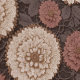 This elegant crochet-inspired pattern features richly layered floral medallions crafted in warm earth tones—cream, taupe, mocha, and terracotta—set against a dark, lace-like background that enhances the design’s depth and texture. Each bloom appears meticulously stitched from overlapping petal layers, giving the pattern a dimensional, hand-crafted look reminiscent of vintage doilies and heirloom crochet work. The intricate lace beneath the flowers weaves together delicate loops, leaves, and fine thread details, creating a sophisticated contrast to the bold, sculptural blossoms.