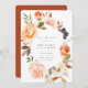 Earthy Watercolor Floral Frame, wedding save the date card. Features, single photo backing on terracotta orange background.
