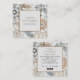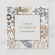 An earthy boho style interior designer or home stager business card design with muted brown grey and black hues with a central nameplate. Subtle abstract shapes and leaves combine to create a unique modern subtle style mimicking pretty wallpaper or fabric design.