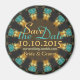 stylish and trendy in teal, goldy orange, earthy colour palette - save the date wedding or engagement announce memento magnet. Idea : create an online page or blog (eg: tumblr) for the wedding / special event ~ put the link on the magnet ~ easy and convenient way to keep everyone updated!