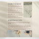 Séduisez votre public avec notre modèle de brochure triple Elegance Earth, rayonnant l'allure naturelle à travers une palette harmonieuse de couleurs d'ivoire et de marron, accompagnée d'une délicate ombre foliaire pour une esthétique monochromatique. Un logo préfabriqué est affiché sur la couverture avec un bouquet floral naturel dans un cadre ovale qui respire l'élégance tout en accompagnant la police serif chic peut mettre à jour instantanément votre marque pour un look tendance. Mettez à jour le texte personnalisable pour s'adapter à votre marque, et personnalisez les détails et les photos stocks dans la brochure pour votre propre usage. Ces brochures 5x7 sont de la taille idéale pour afficher vos listes de prix et le menu de services, ou décrire votre gamme de produits. Un excellent outil de marketing à distribuer à des clients potentiels afin de présenter rapidement votre entreprise. Idéal pour les salons, salons, spas, centres de bien-être, massothérapie, marques de soins et plus encore. Veuillez contacter le concepteur pour obtenir de l'aide sur les modifications de composition ou de disposition spéciales. Art et design originaux © 1201AM Design Studio | www.1201am.com