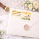 A soft watercolor sunshine safari design featuring a radiant daisy sun, golden clouds, and adorable baby elephant and giraffe artwork. The warm yellow and cream palette pairs beautifully with the popular “Here Comes the Son” baby shower theme. This bright yet gentle layout adds a cheerful finishing touch to envelopes while keeping a clean, modern look that prints clearly and elegantly.