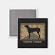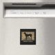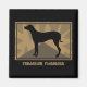 Three wooden, earthy tones make up this funky Rhodesian Ridgeback merchandise. The dog breed's silhouette is in the centre, with radical angles in the background. Below is the breed name. Cool Rhodesian Ridgeback gifts for dog lovers.