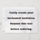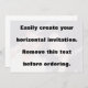 Easily create your own horizontal invitation. Change image with your own photo. Customize it if you want to change text, font size and colour and make your own invitation. Horizontal orientation but you can easily make it vertical. Don't forget to delete the large text before ordering.